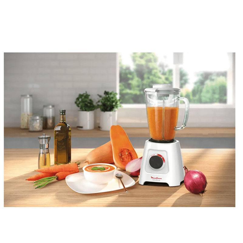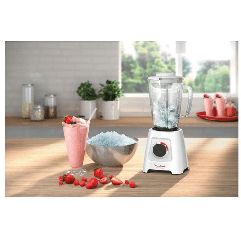 Le blender Blendforce base plastique de Moulinex allie puissance, simplicité et confort pour un mixage parfait. Grâce à son système Air Cooling innovant, une durée de vie optimale est garantie. Ce blender dispose d’un moteur puissant, d’un bol en verre, de fonctionnalités sécurisées telle que la technologie Smart Lock et d’un design ergonomique pour une efficacité et un confort d’utilisation élevé.