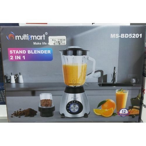 Le blender électrique Multismart MS-BD5201, avec une capacité de 1.5 litre et une puissance de , offre des performances fiables pour la préparation de boissons et de mélanges. Son bol généreux en verre permet de mixer en grande quantité, idéal pour les smoothies, les soupes, le café et les préparations culinaires variées. Avec une puissance , il assure un mixage efficace des ingrédients. Compact et facile à utiliser, le blender MS-BD5201 est un choix pratique pour des résultats de mixage rapides et homogènes dans la cuisine quotidienne.