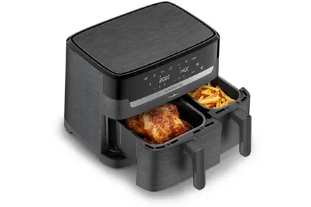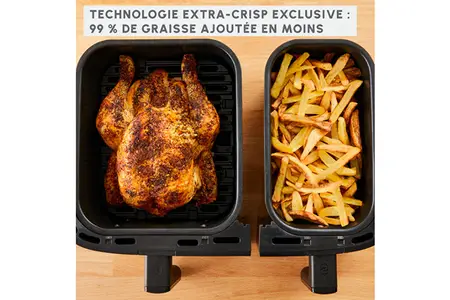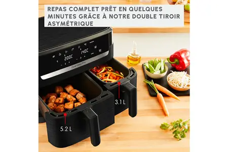- Friteuse à air chaud avec double tiroir: XXL de 5,2L et 3,1L pour cuire deux plats simultanément