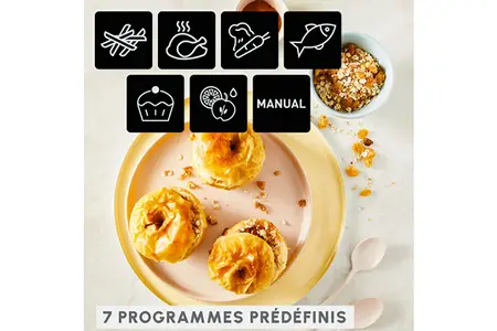 - 7 programmes automatiques: frites, poulet, légumes, poisson, dessert, déshydratation et mode manuel