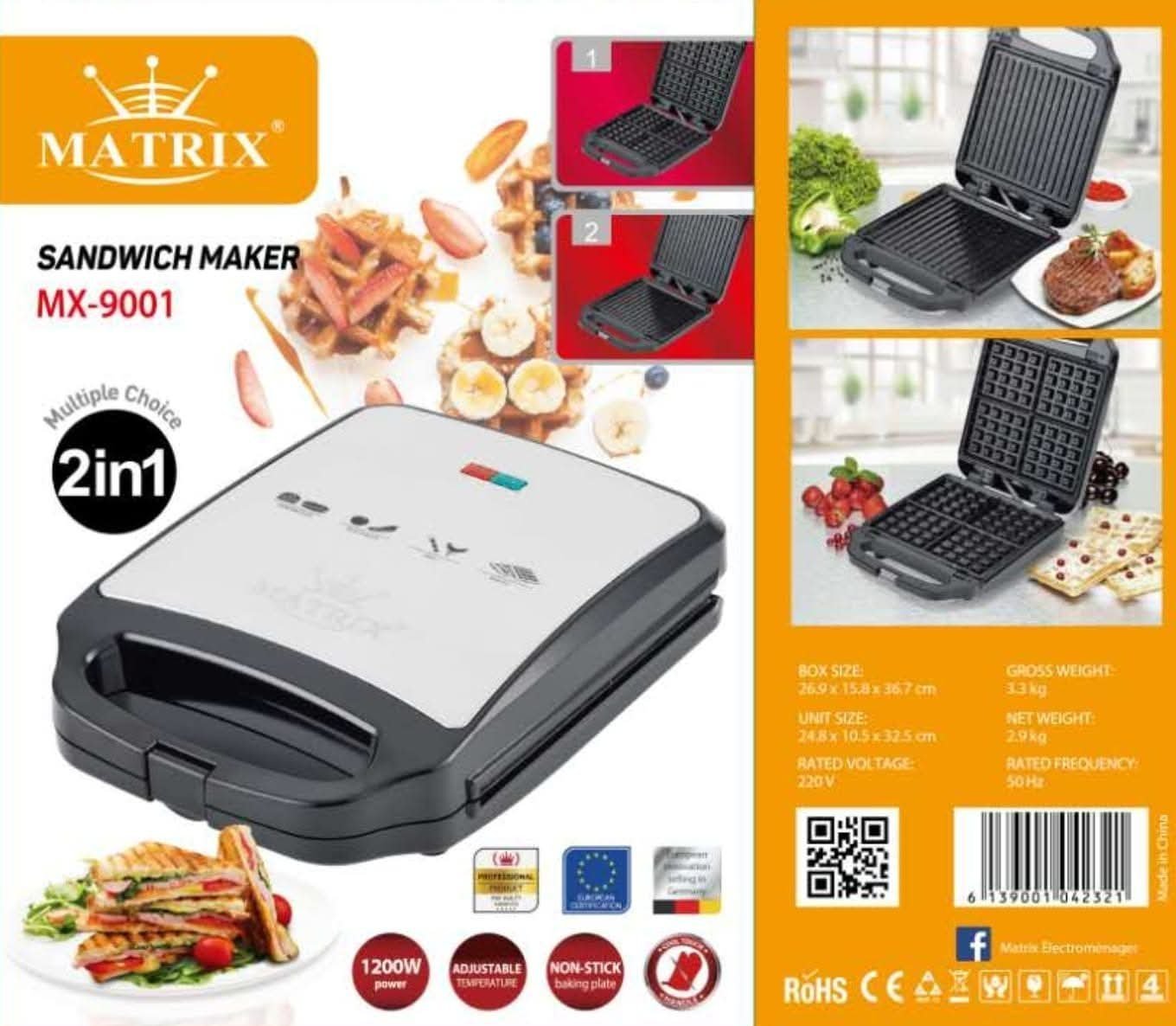 Panineuse et Gaufrier XL 2 en 1- 1200 W Matrix Mx-9001 x19,900 د.ج