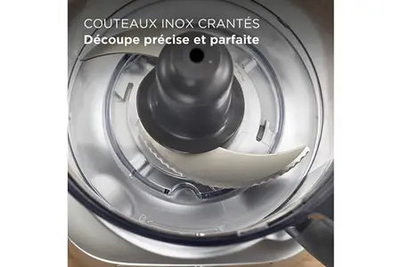Doté d’un moteur d’une puissance de 1000 W, et d’un bol de 3 litres, vous pourrez réaliser toutes vos recettes. Ses nouvelles lames micro crantée garantissent des résultats précis et reguliers à chaque passage.